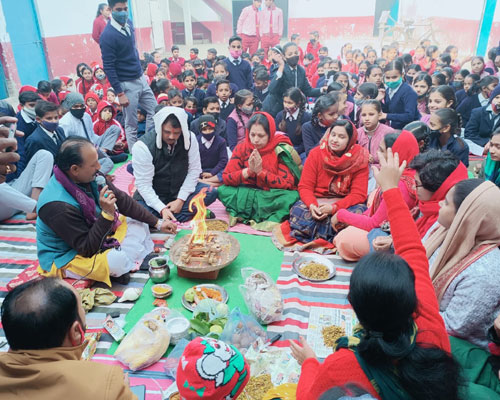 नव वर्ष 2022 पर हवन कराते हुए कौशिक इंटर कॉलेज में