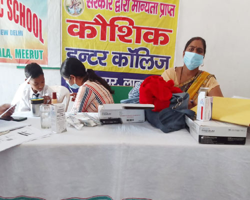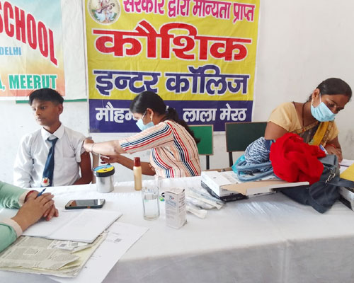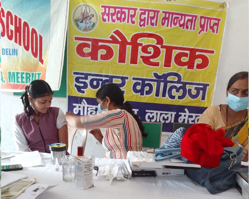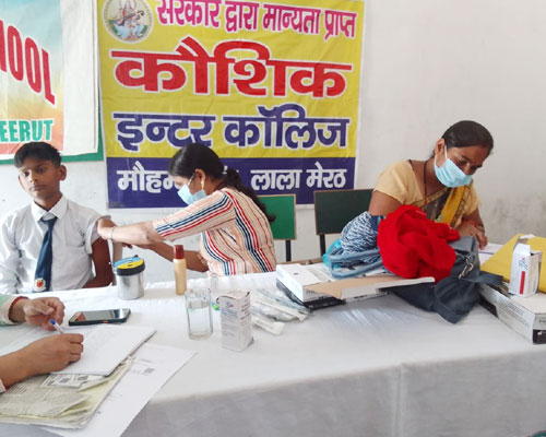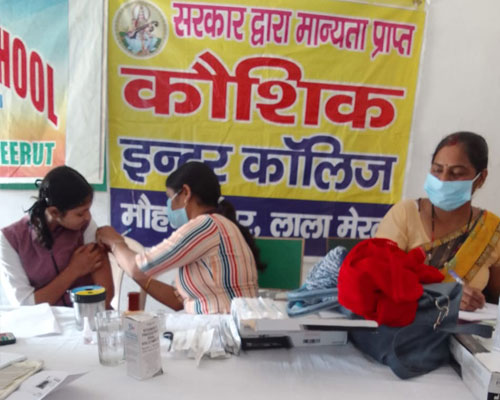 कौशिक इंटर कॉलेज में 12 से 14 वर्ष तक के छात्र छात्राओं को कोरोना वैक्सीन लगाते हुए स्वास्थ्य विभाग की टीम